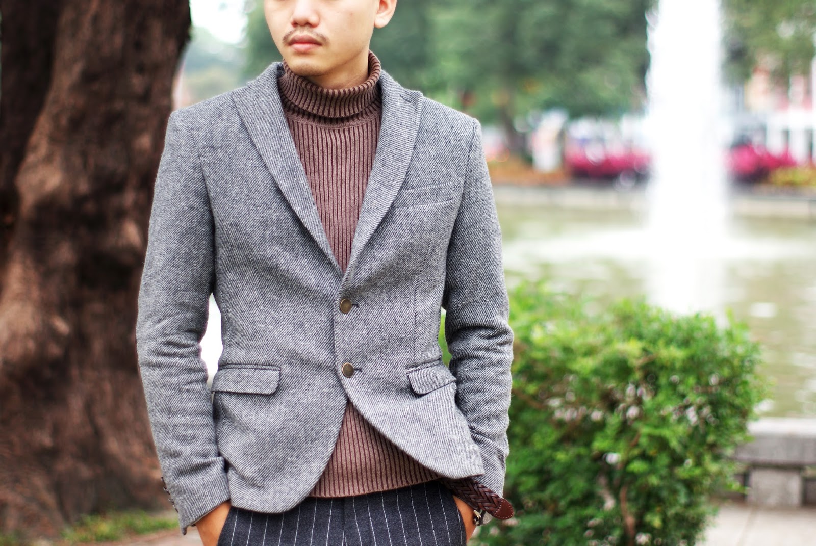 單品的部分利用之前購買的灰色羊毛西裝外套